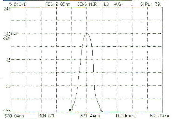 532nmグリーン・レーザーをシングル・モード・ファイバーに入力して縦横モード・シングルモード出力が得られるようになりました。ファイバー出力は20mWです。