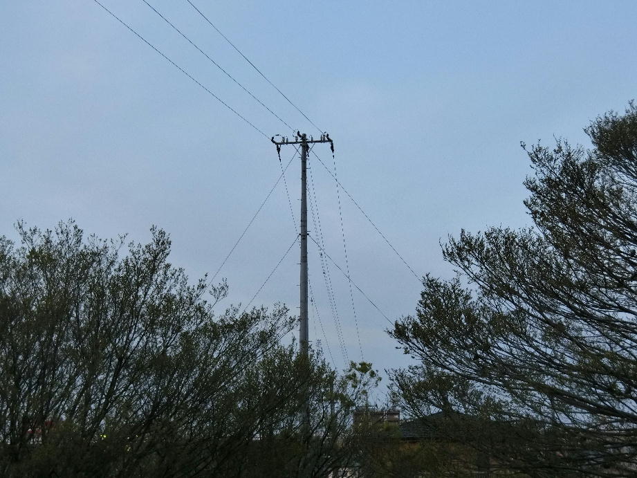 別の場所に10羽ぐらいいたが照射するとみんないなくなった。ムクドリは100m、200m離れた群れと声で連絡しているのかな?それともテレパシーで連絡しているのかな?