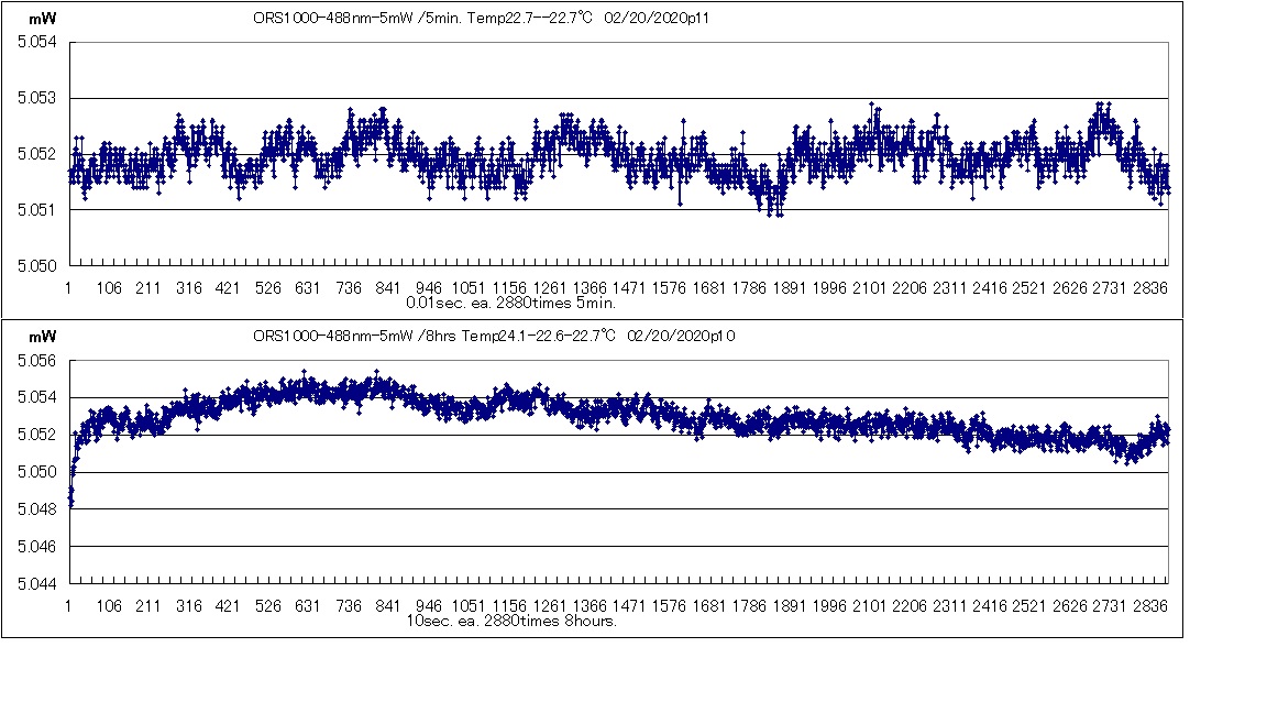 5分間の出力変動0.04%、8時間の変動0.08%の超安定性が得られます。
